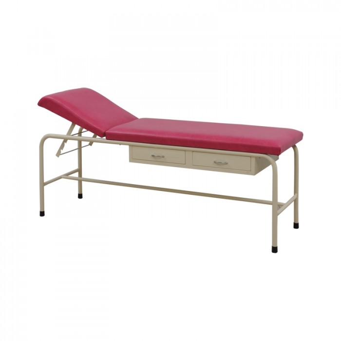 Dört kademeli manuel baş ayarlı vinleks deri döşeme iki çekmeceli muayene masası